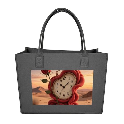LKWSCGHM Felt Tote Bag for Women Melting Clock Rose Satchel Bags Large Reusable Grocery Shopping Bag Beach Handbags, Dark Gray-style, One Size