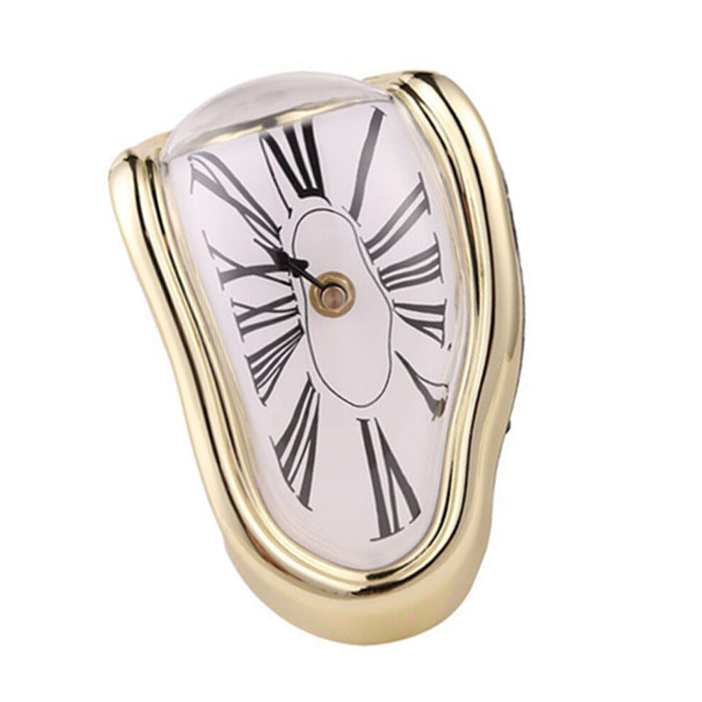 Melting Clock Plastic Retro Decorative Electroplated Metal Paint Desk Table Clock for Office Golden