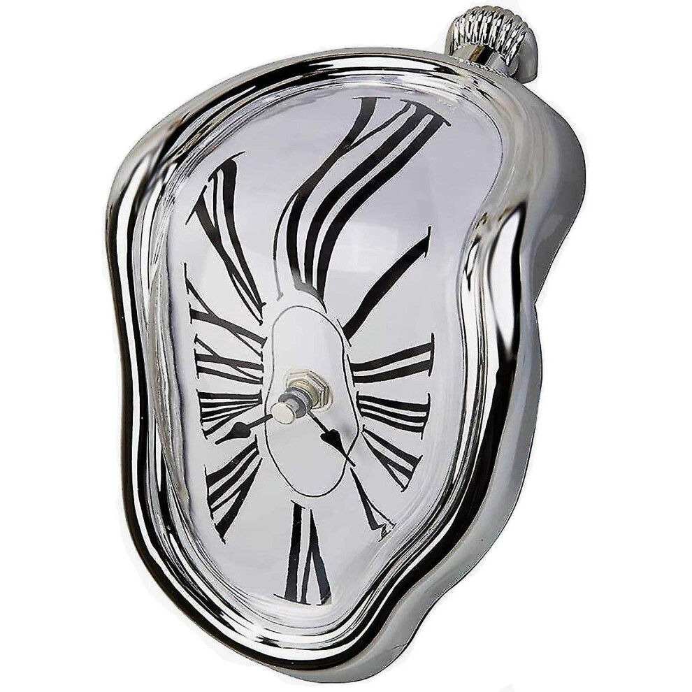 Melting Clock, Salvador Dali Watch Melted Clock For Decorative Home Office Shelf Desk Table Funny Creative Gift Silver 1pc)