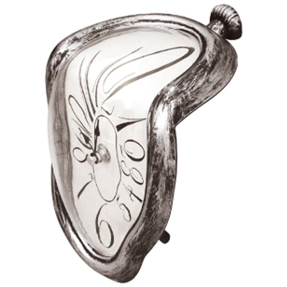 (As show, One size) Melting Clock, Salvador Dali Watch Melted Clock for Decorative Home Office Shelf Desk Table Funny Creative Gift Silver 1pc)