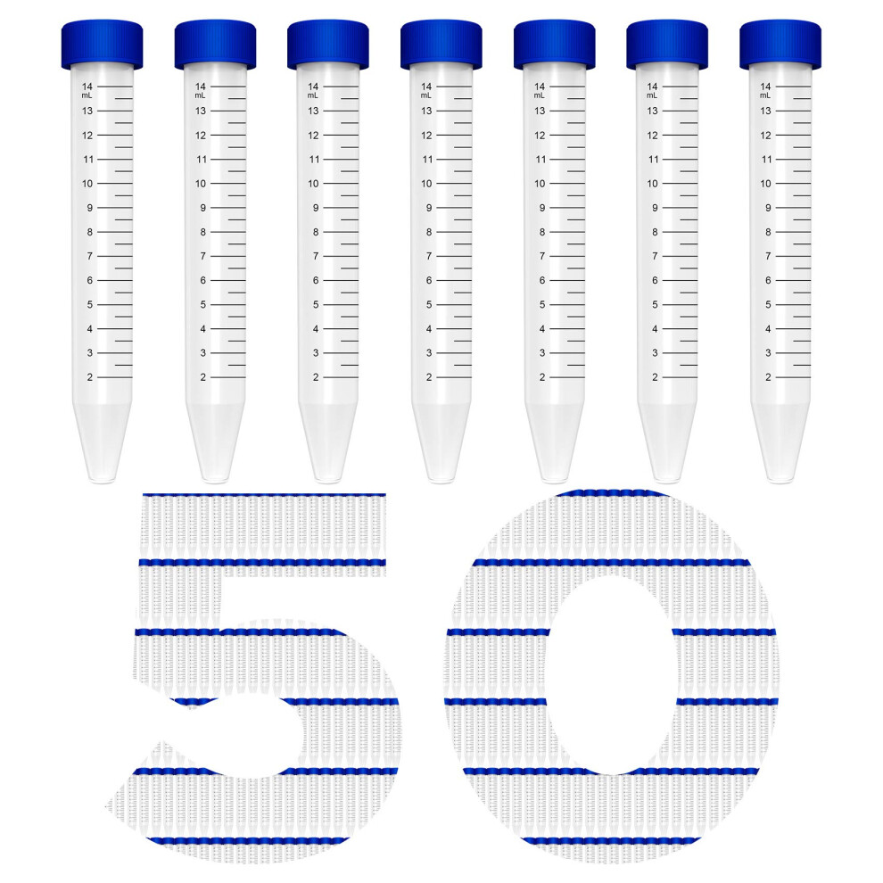 Membrane Solutions Conical Centrifuge Tubes 15mL 50 Pack Sterile Plastic Test Tubes with Screw Caps Polypropylene Container with Graduated and Writ