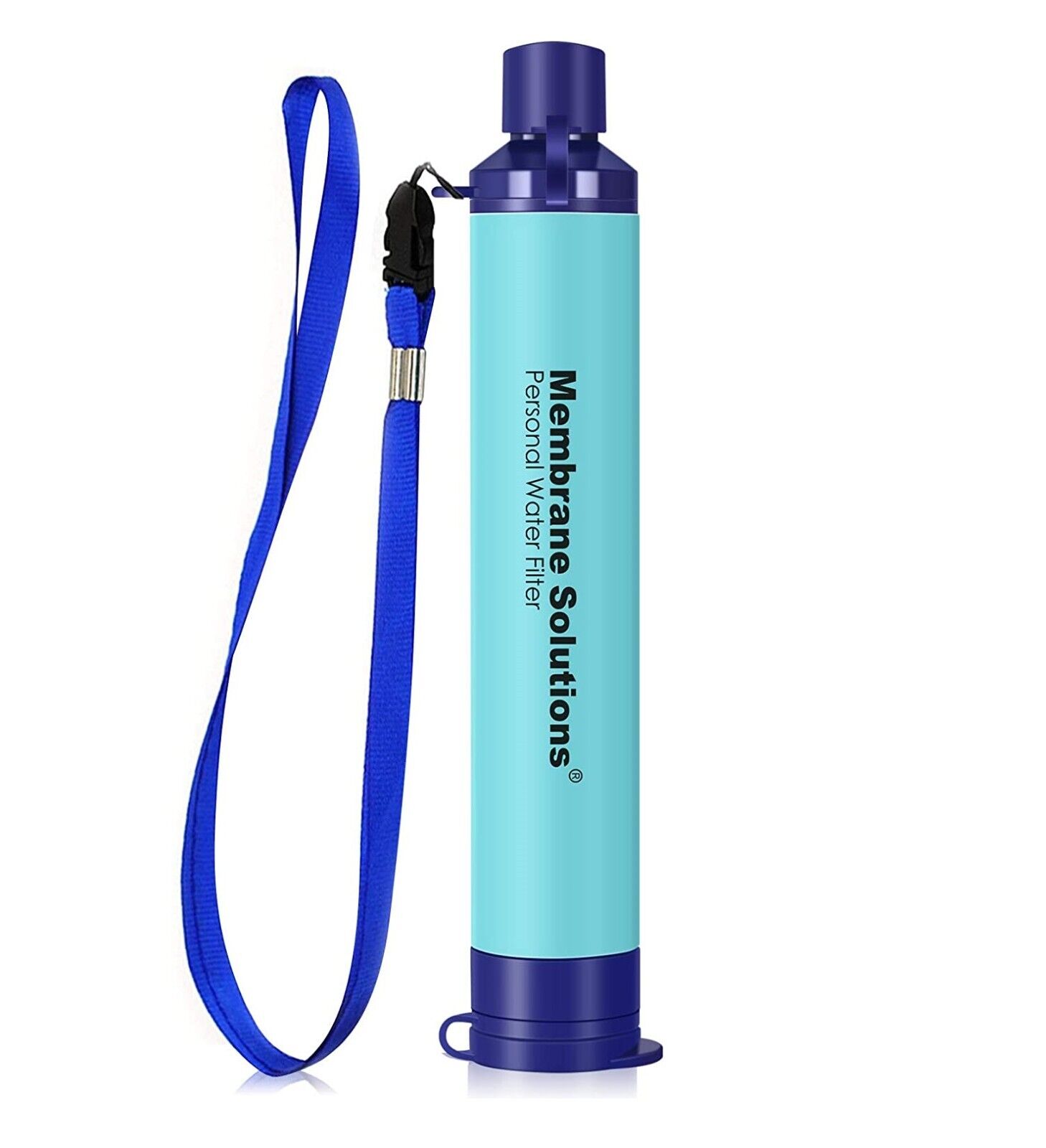 Membrane Solutions Water Filter Straw, 0.1 Micron Personal Water Filter Survival Portable Gear, NSF/ANSI 42&372&401 certificated, for Camping, Hiking, Travel, Emergency Preparedness, Blue, 1 Pack