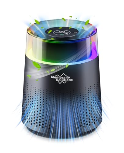 Membrane Solutions MSB5 Air Purifier for Bedroom, H13 True HEPA Air Purifier for Home, Office, Desktop, 20dB Quiet Air Cleaner Sleep Mode, Colorful Night Light, for Pet, Smoke, Dust, Mold, Black