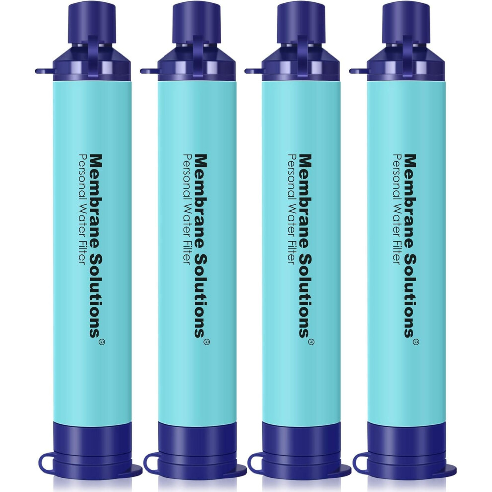 Membrane Solutions Water Filter Straw, 0.1 Micron Personal Water Filter Survival Portable Gear, NSF/ANSI 42&372&401 certificated, for Camping, Hiking, Travel, Emergency Preparedness, Blue, 4 Pack