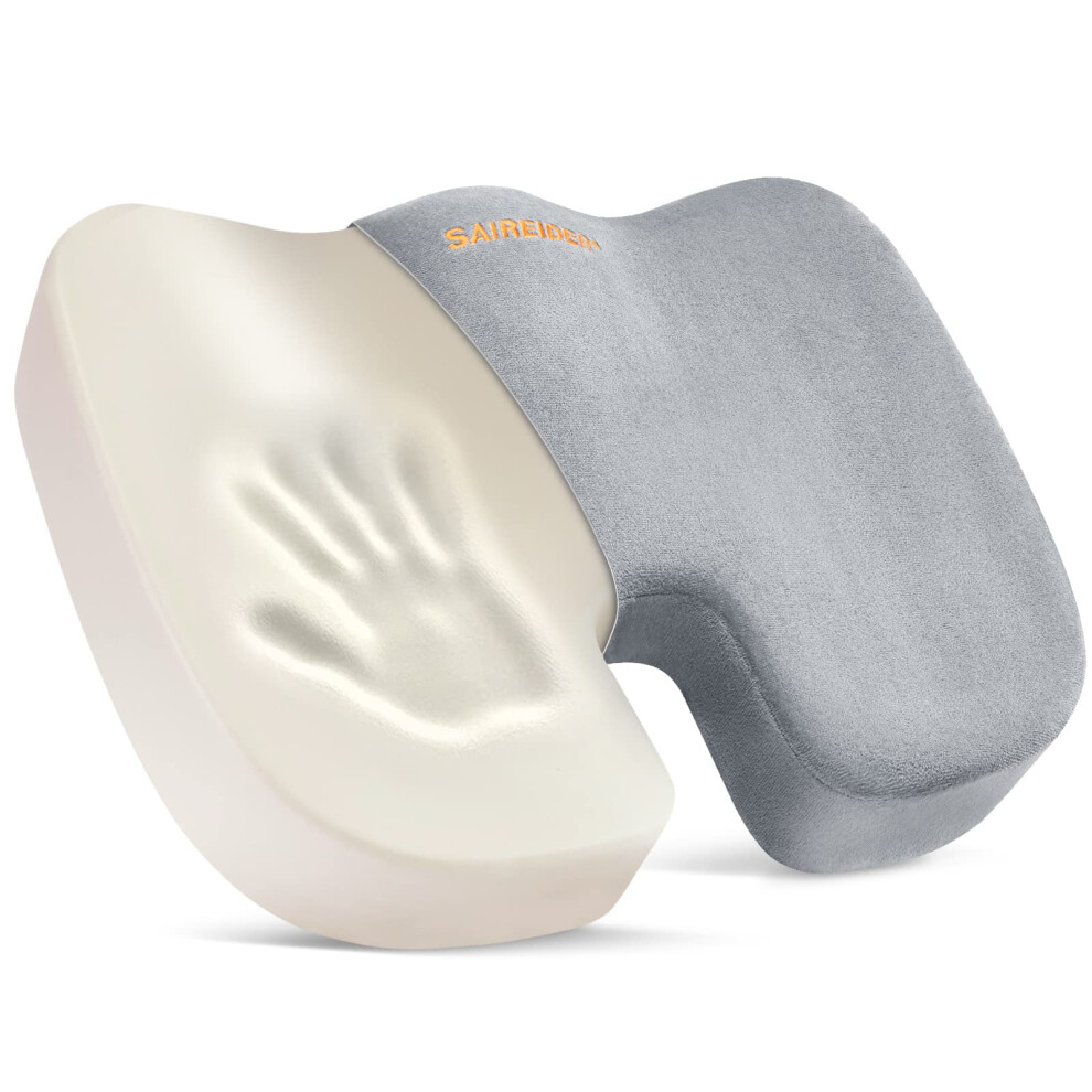SAIREIDER Office Chair Cushion Car Seat Cushion Memory Foam Coccyx Cushion Pads for Tailbone Pain Sciatica Relief Pillow Correct Sitting Posture (