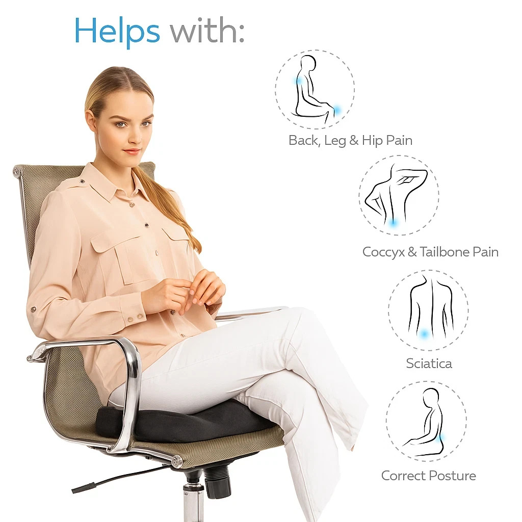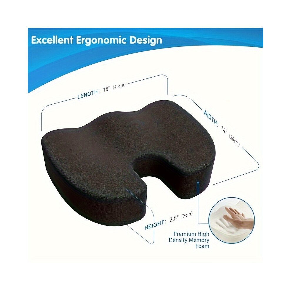 Orthopedic Memory Foam Coccyx Seat Cushion - Non-Slip Tailbone Pain Relief for Office Chair or Car