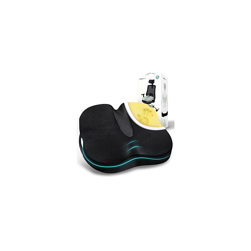 Memory Foam Coccyx Orthopedic Seat Cushion, TravelEase Seat Cushion for Lower Back Pain and Sciatica Tailbone Pain Relief ? Fit for Office Chair, Car