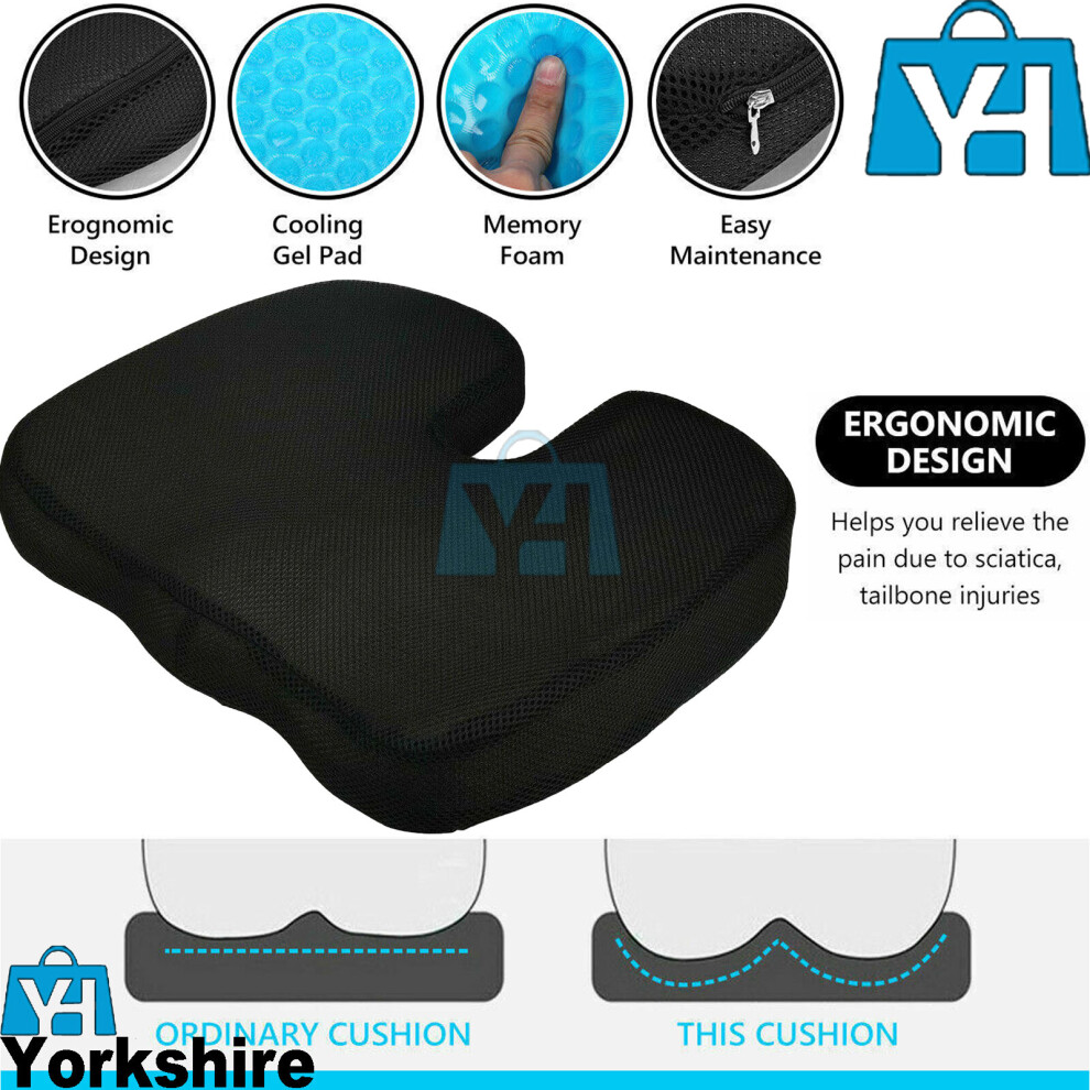Cooling Gel Memory Foam Coccyx Seat Cushion Back Pain Relief Office Chair