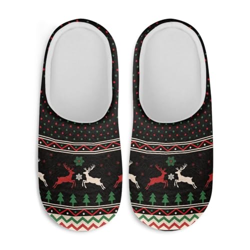 Jndtueit Christmas Deer Art Design Fuzzy Slippers Cozy Memory Foam Home Shoes for Women Men Black Wide Width Indoor Shoes Plush Fluffy Winter Slippers