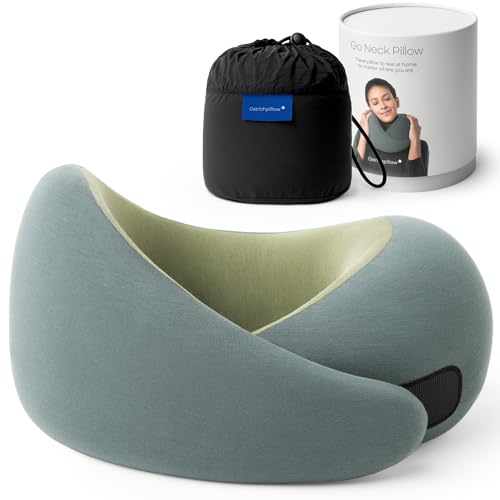 Ostrichpillow Go Neck Pillow - Premium Memory Foam Travel Pillow, 360º Ergonomic Design, Asymmetrical Sides, Travel Bag Included, Washable Modal Cover