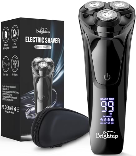 Brightup Electric Razor for Men, Waterproof Cordless Electric Shaver with Pop-Up Trimmer, Type-C Fast Charge, Travel Lock & Case, Wet & Dry Rotary Shavers for Men Smooth Shaving, Black