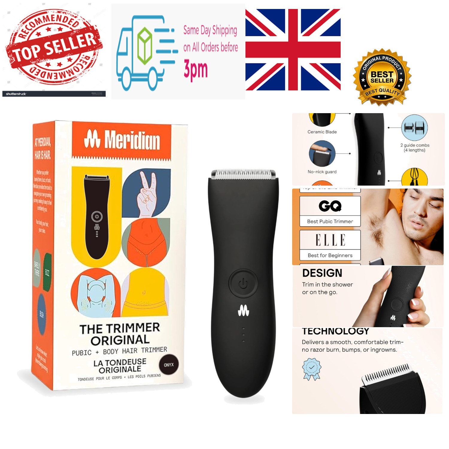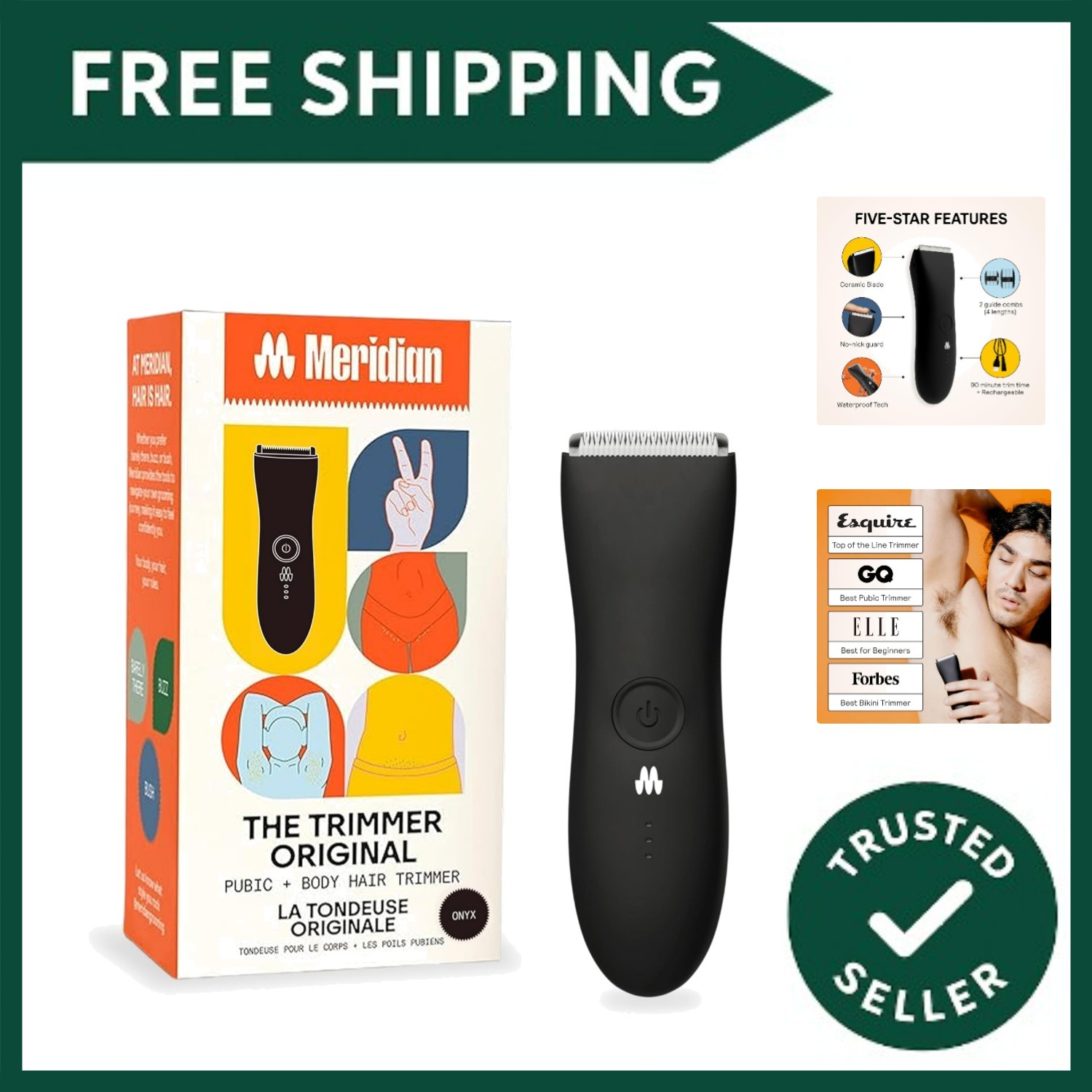 Meridian The Trimmer Original, Body Hair Trimmer for Men, Electric Shaver for P