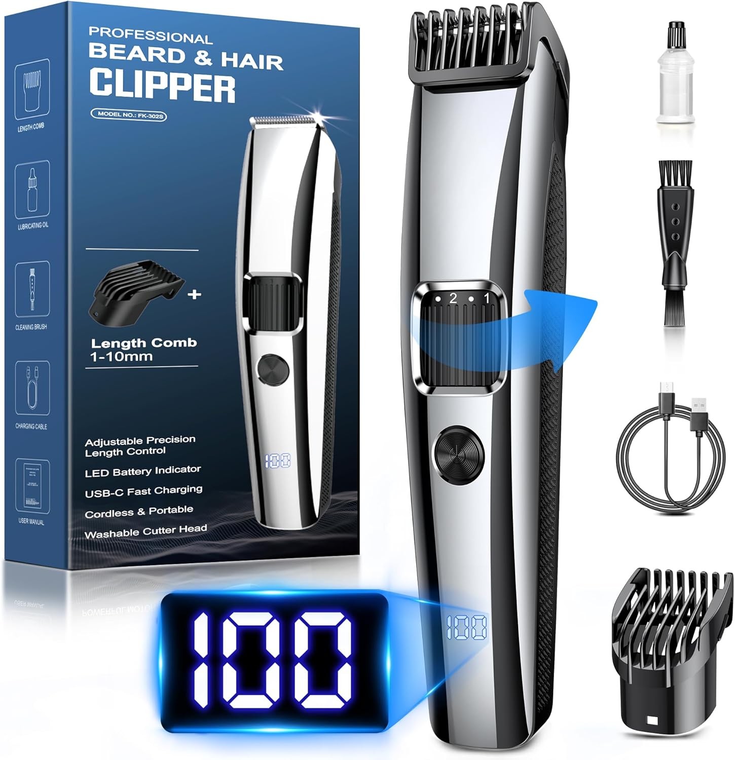 Ufree Beard Trimmer for Men, Electric Razor Shaver, Cordless Hair Clipper Shaving Kit for Mustache Body Nose Ear Hair Facial, Adjustable Beard Grooming Kit Birthday Gifts for Men