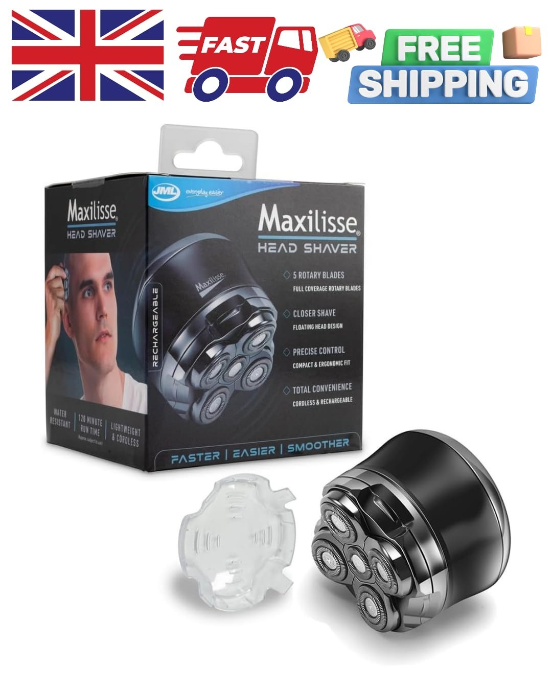 JML Maxilisse Head Shaver for Men - Professional Electric Shaver with 5 Floating