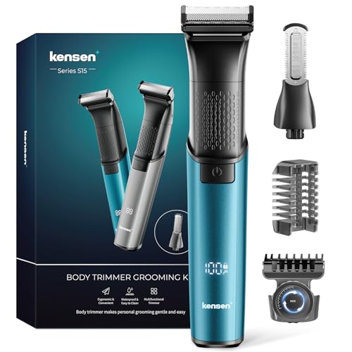 Kensen 2-in-1 Manscape Body Hair Trimmer & Beard Trimmer for Men, Electric Pubic Groin Shaver & Razor, Cordless Waterproof Male Grooming Kit for Limbs & TrunkIn & Timate & Facial Hair, 50 Times Usage