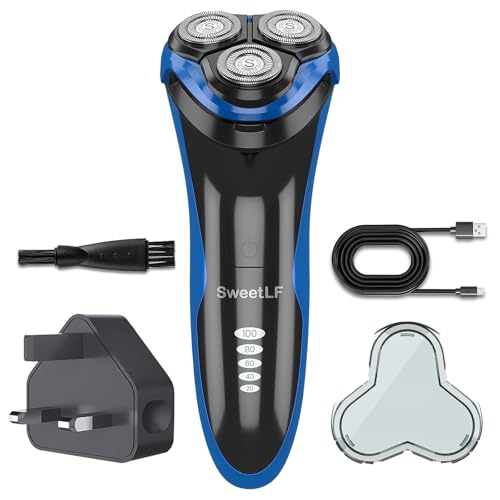 SweetLF Electric Razor for Men, Include 1 UK Charger & Pop-up Trimmer, Rechargeable Shavers for Men, 100% Waterproof Electric Shaver Wet & Dry Shaving, Blue Black