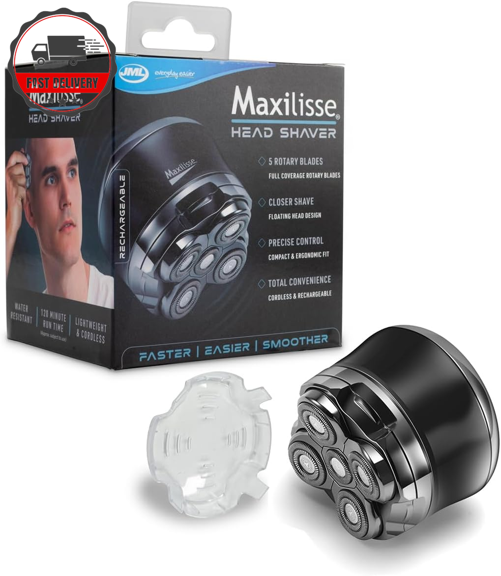 JML Maxilisse Head Shaver for Men - Professional Electric Shaver with 5 Floating Heads, Cordless, Rechargeable & Lightweight Design with Ergonomic Comfort Grip for Ultra-Close Smooth Head Shaving