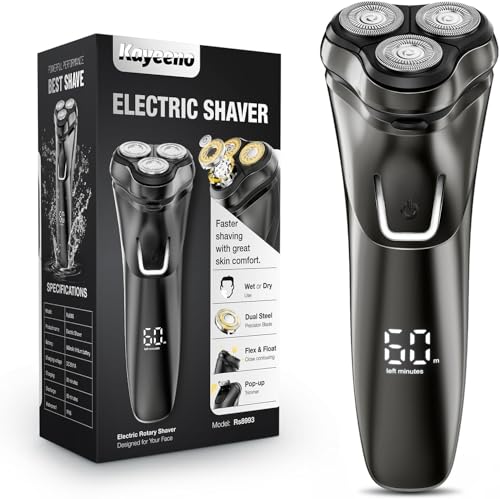 Kayeeno Men Electric Shaver Rechargeable: Waterproof Cordless Foil Razor for Face Shaving & Wet Dry Use, with Pop Up Trimmer and Travel Lock, Portable