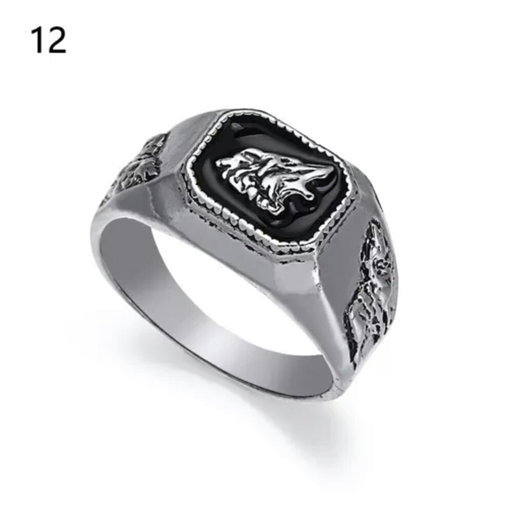 And American Style Alloy Square Wolf Head Carved Men's Ring Gold/Silver For men-12