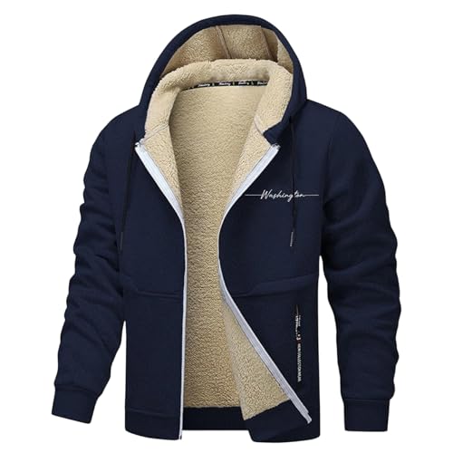 Mens Fleece Hoodie 4xl, Men's Winter Coats, Winter Thick Warm Jackets Round Neck Hoodie Top Jacket Thermal Hiking Ski Down Coat with Hood Cargo Jacket Corduroy Sherpa Fleece Lined Jacket