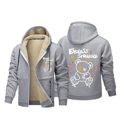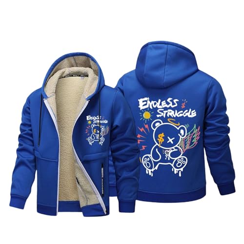 Mens Fleece Hoodie 4xl, Jacket Men, Winter Thick Warm Jackets Round Neck Hoodie Top Fluffy Loose Coats Outdoor Casual Outwear S-5xl Jacket Thermal Hiking Ski Down Coat with Hood