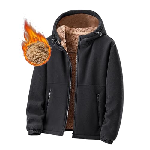 Mens Fleece Hoodie 4xl, Winter Jackets for Men, Winter Fleece Coats Full Zip Warm Thick Pocket Outwear Jackets Water Resistant Fleece Puffer Fluffy Loose Coats Outdoor Casual Outwear S-5xl