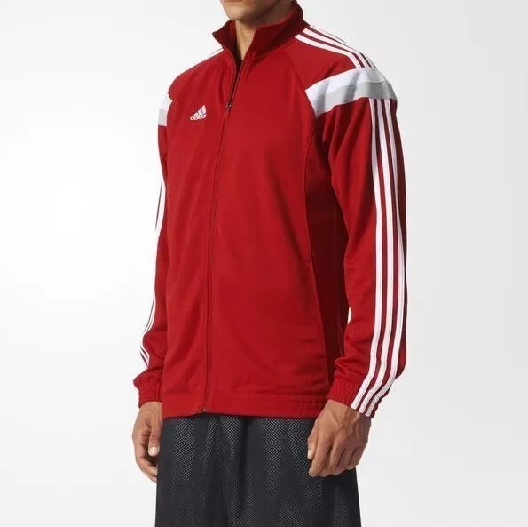Adidas Tracksuit Jacket Top Mens Small Red Full Zip Loose Fit Mesh Lined Pockets