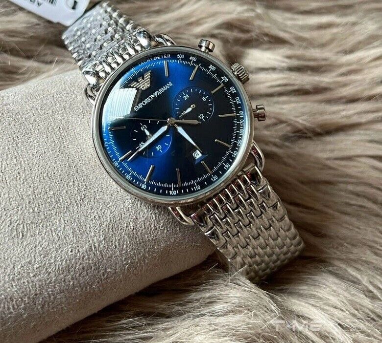 NEW EMPORIO ARMANI MENS WATCH AR11238 BLUE DIAL STAINLESS STEEL SILVER STRAP