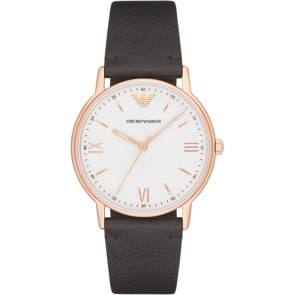 Emporio Armani Mens Gents Watch Brown Leather Strap White Dial AR11011