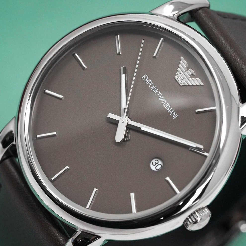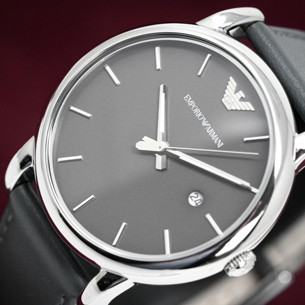 Emporio Armani Men's Classic Watch AR1730 Grey Dial Grey Leather Strap