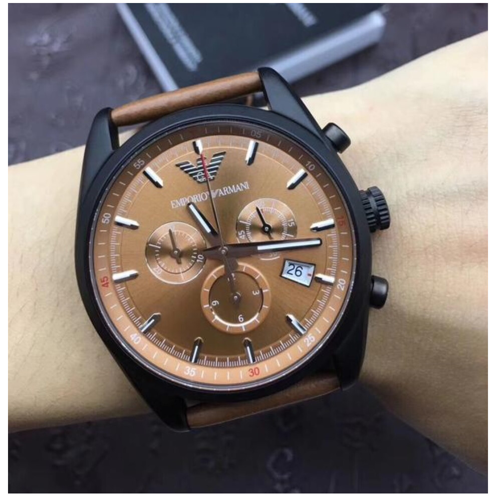 EMPORIO ARMANI MEN'S WATCH AR6077 BROWN STRAP BROWN DIAL GREY CASE