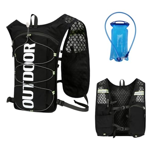 Running Vest with 1.5L Hydration Bladder Women Mens,Adjustable & Breathable Running Hydration Vest,Reflective Hydration Backpack for Cycling Hiking Marathon,Lightweight Backpacks (Black, one size)