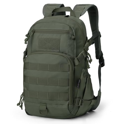 Huntvp Military Backpack 25L, Tactical Rucksack Mens Backpacks Travel Ruck sacks Adult Men, Molle Assault Pack Rucksacks Laptop Backpacks for Hiking Camping Trekking Hunting Traveling (Army Green-25L)