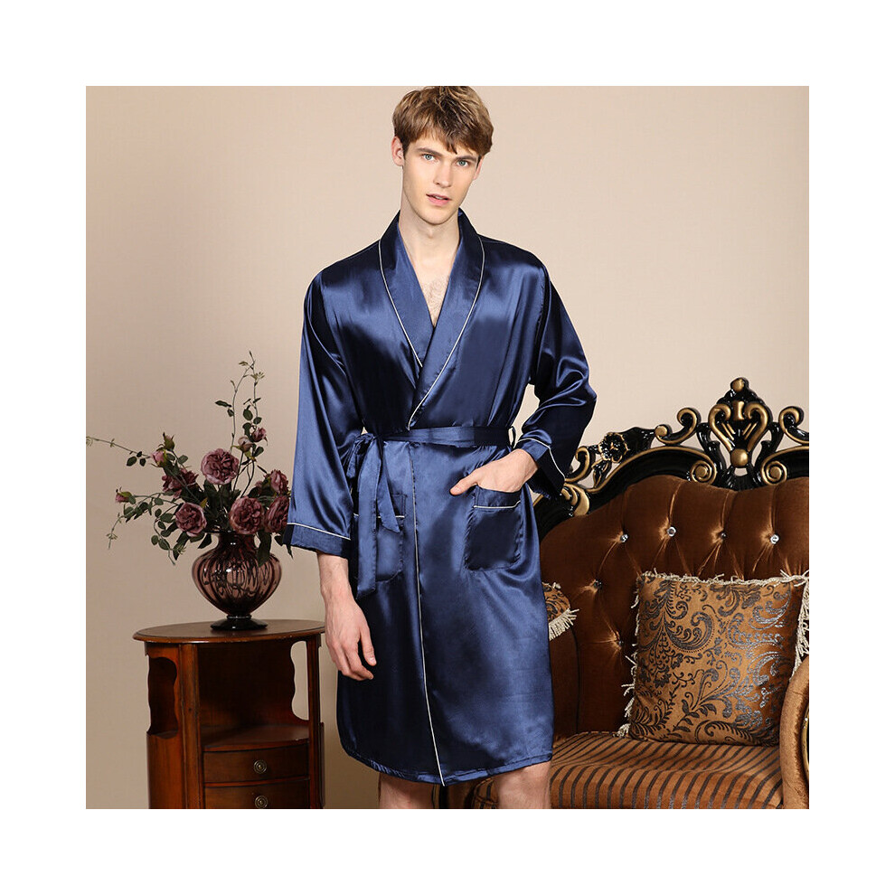 Men Bath Robe Lounge Sleepwear Silk Nightwear For Men Comfort Silky Bathrobes Noble Dressing Gown Men's Sleep Robes