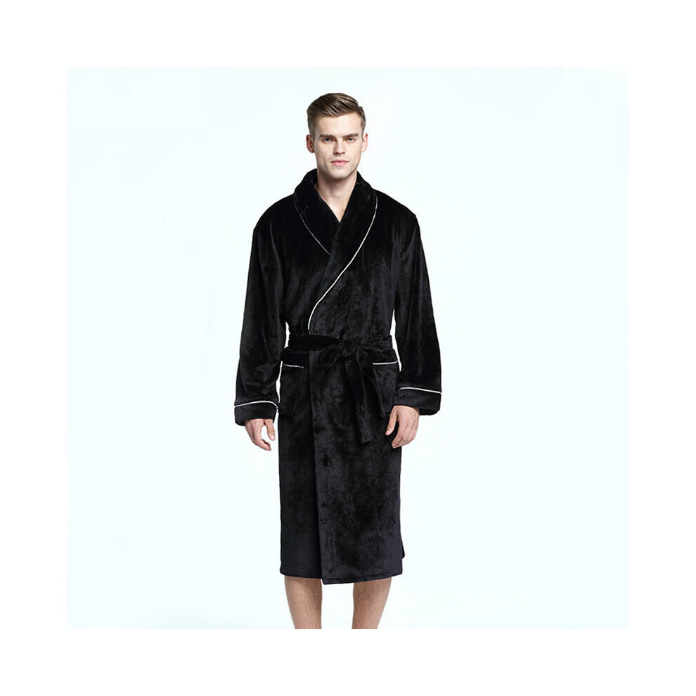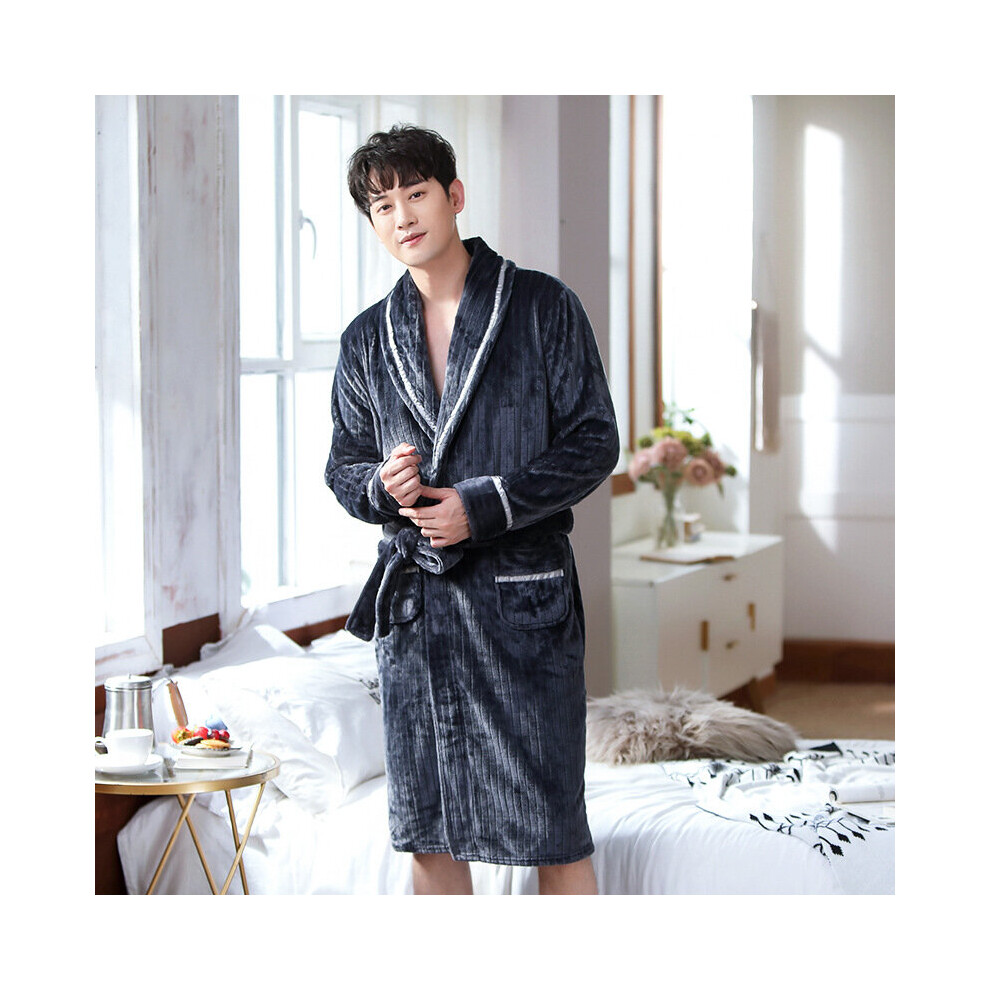 Mens Warm Soft Flannel Coral Fleece Long Bath Robe Mens Kimono Bathrobe Male Dressing Gown Robes