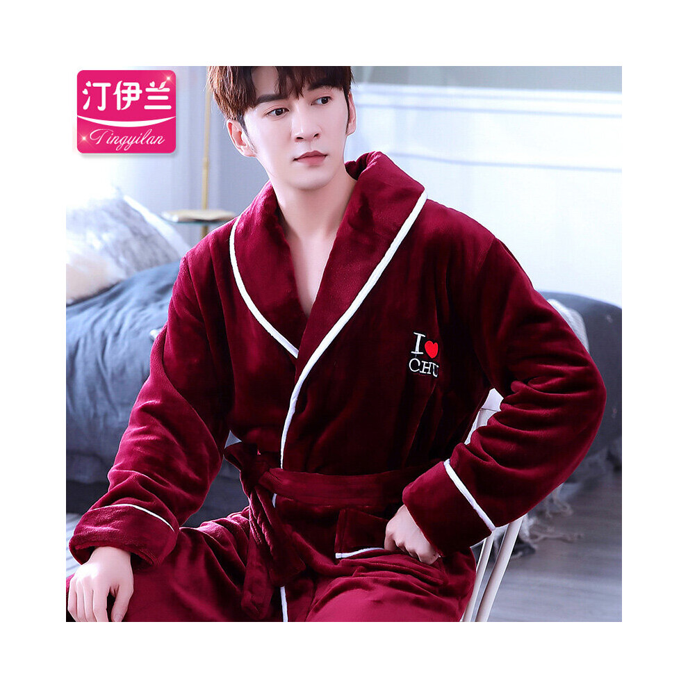 Bathrobe Men Robe Kimono Men Robes Bath Men Sleepwear Mens Robes Long Sleeve Nightgown Fall/winter Coral Fleece Couples Home