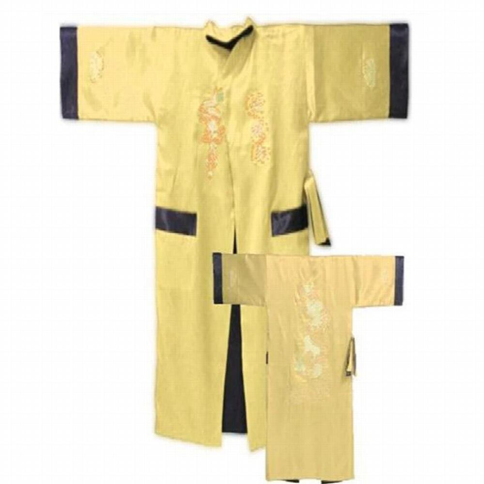 Robe Reversible Burgundy Chinese Mens Silk Satin Robes Two Side Nightgown Embroidery Dragon Kimono Bath Gown Kimono