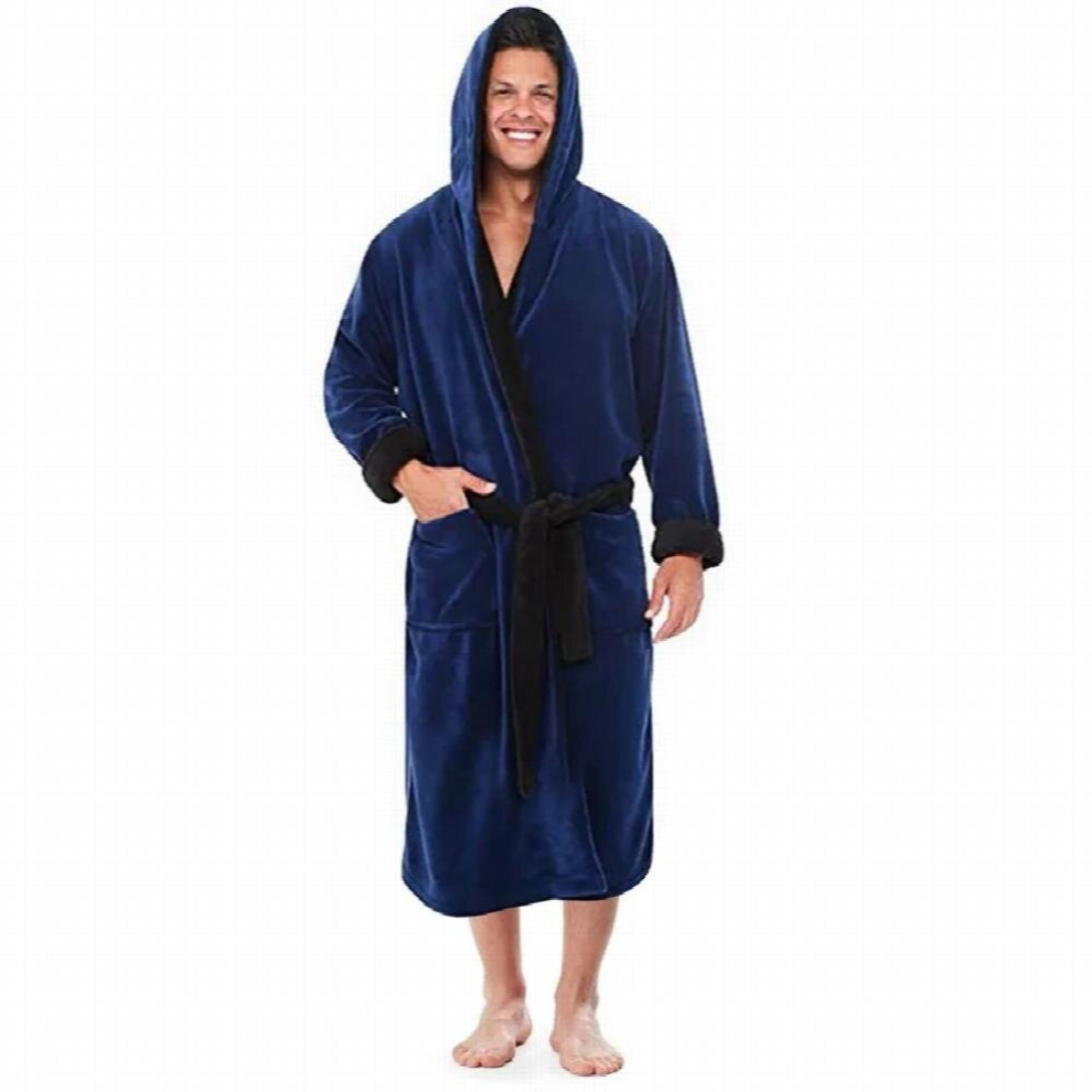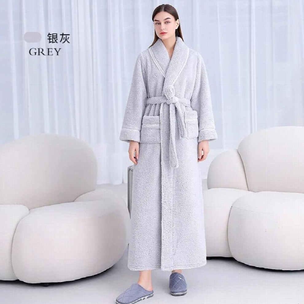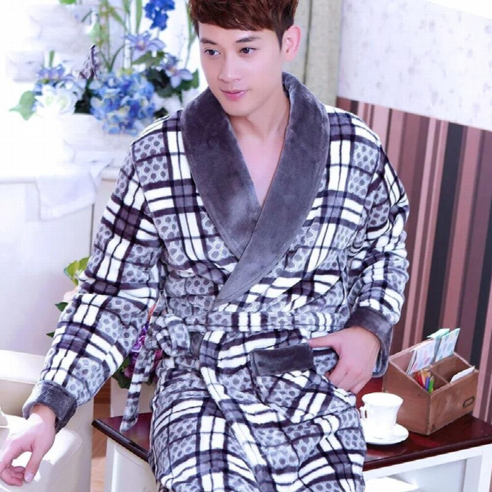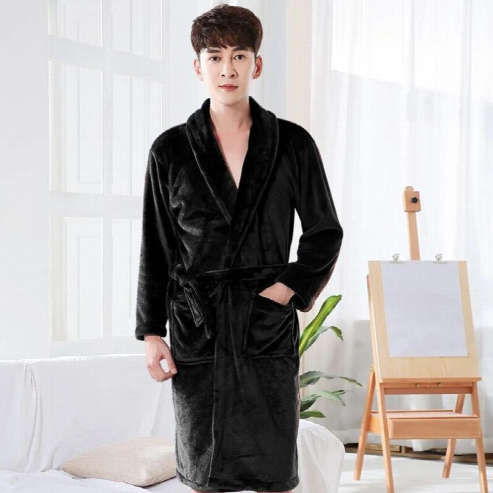 Dress For Men And Women Warm Soft Flannel Coral Fleece Long Bath Robe Mens Kimono Bathrobe Male Dressing Gown Robes
