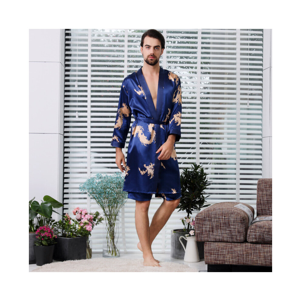 Mens Summer Silk Robes Male Satin Sleepwear Pajamas Kimono Men Home Clothes Cardigan Bath Robe Mens
