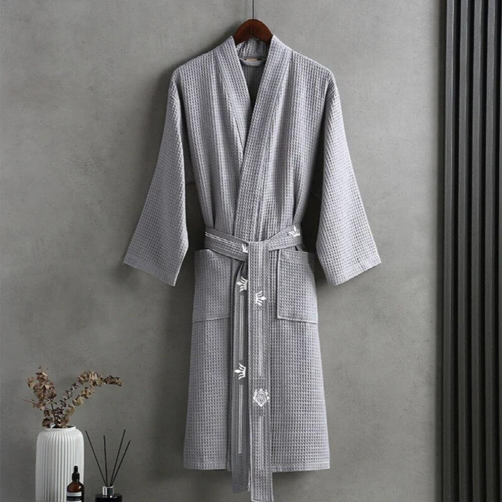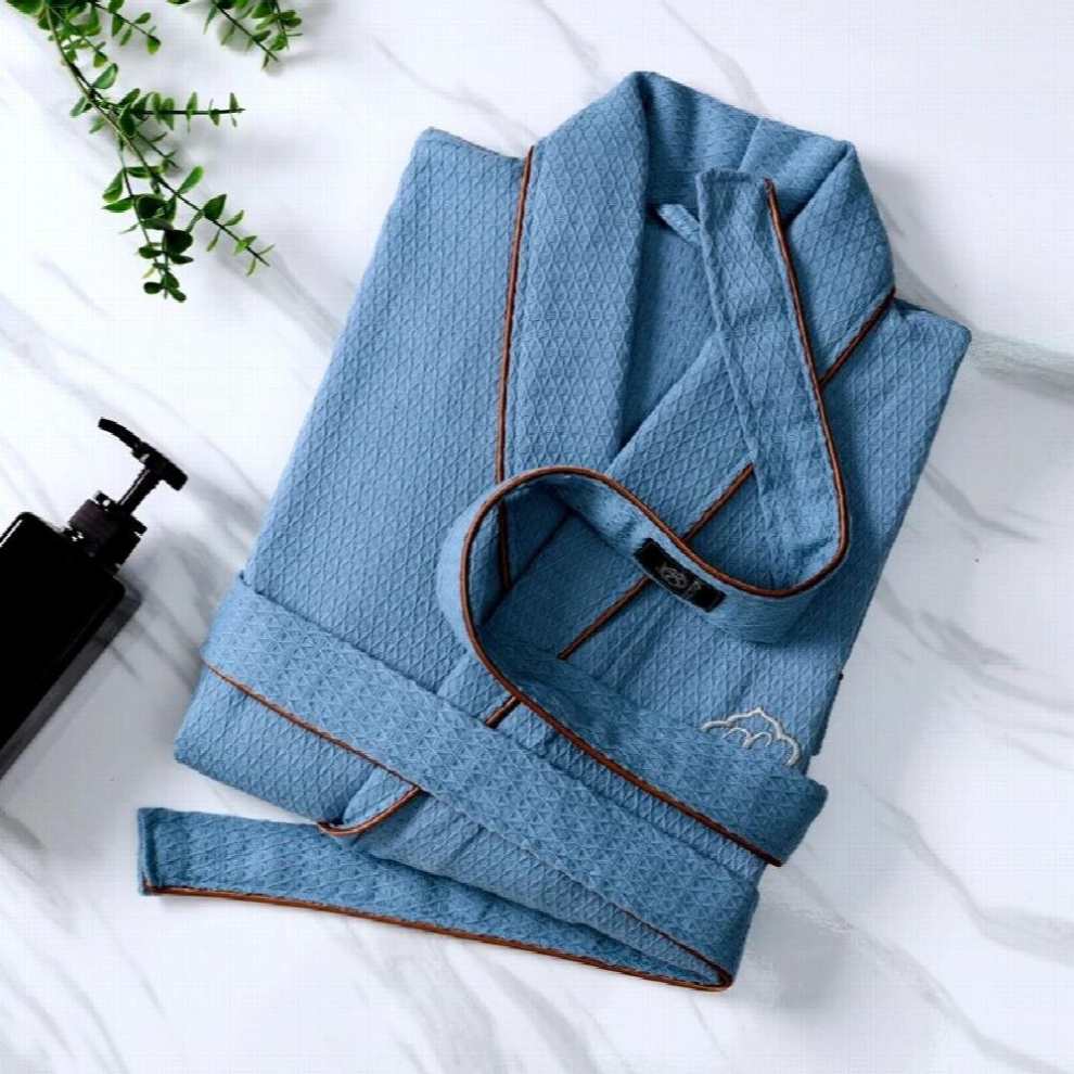 Mens Spring/Summer Waffle Top Bathrobes Men Thin Section V-neck Cotton Kimono Robes Women Absorbent Bath Robe