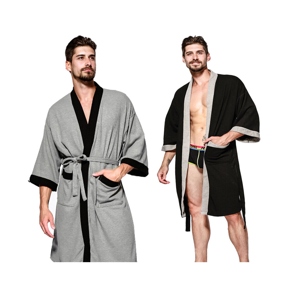 Waffle Bath Robe Kimono Robe Men Summer Bathrobe Suck Sweat Mens Dressing Gown Male Lounge Robes Thin Sleepwear