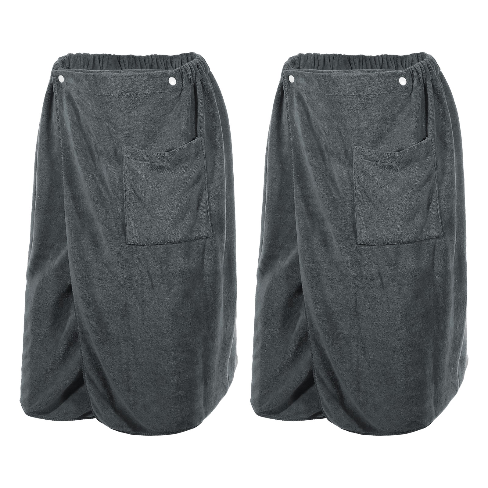 2 Pcs Men's Bath Wrap Towel Adjustable Robes 70x140cm Gray
