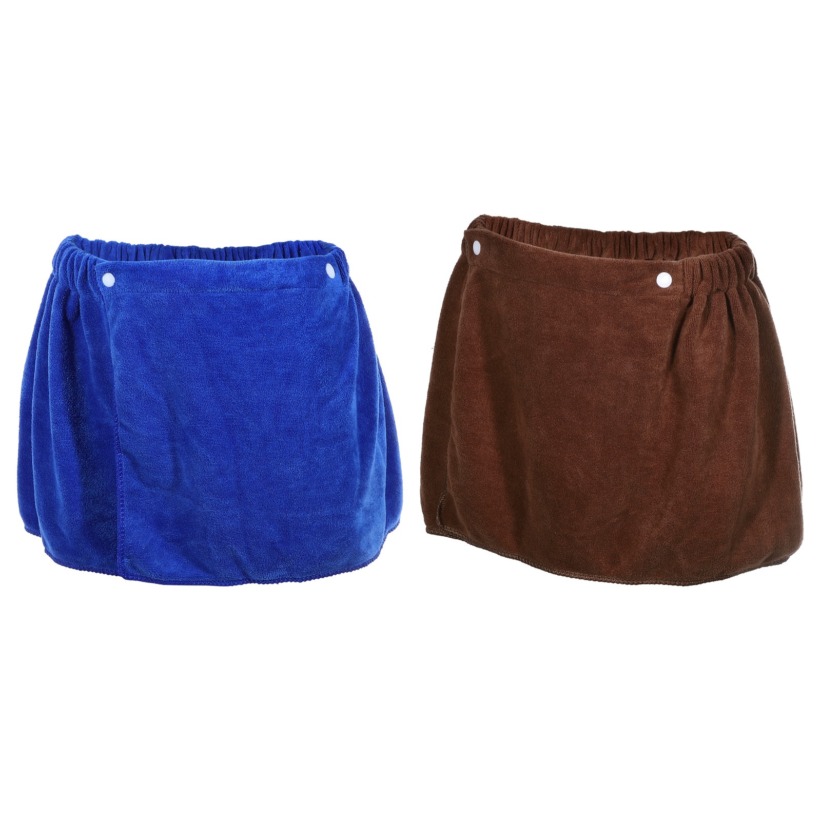 2 Pcs Men's Bath Wrap Towel Adjustable Robes 70x140cm Brown