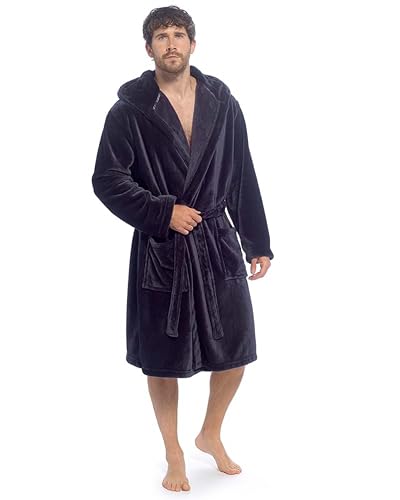 kraftd Men’s Dressing Gown Super Soft Flannel Fleece Bath Robe Cozy Hooded Loungewear & Nightwear | Bathrobe | Sleepwear Robes (UK, Alpha, L, Regular, Regular, Charcoal)