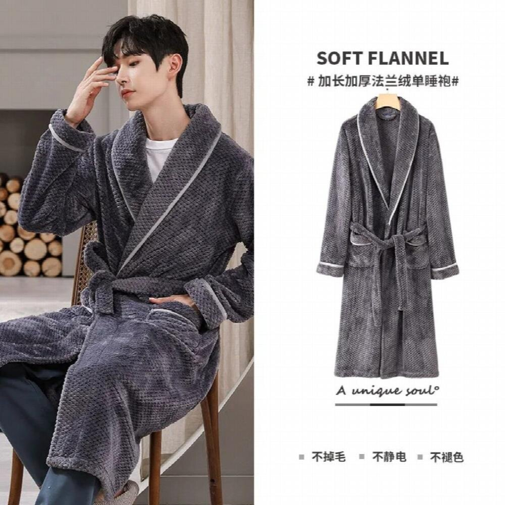Dress for Men and Women Warm Soft Flannel Coral Fleece Long Bath Robe Mens Kimono Bathrobe Male Dressing Gown Robes