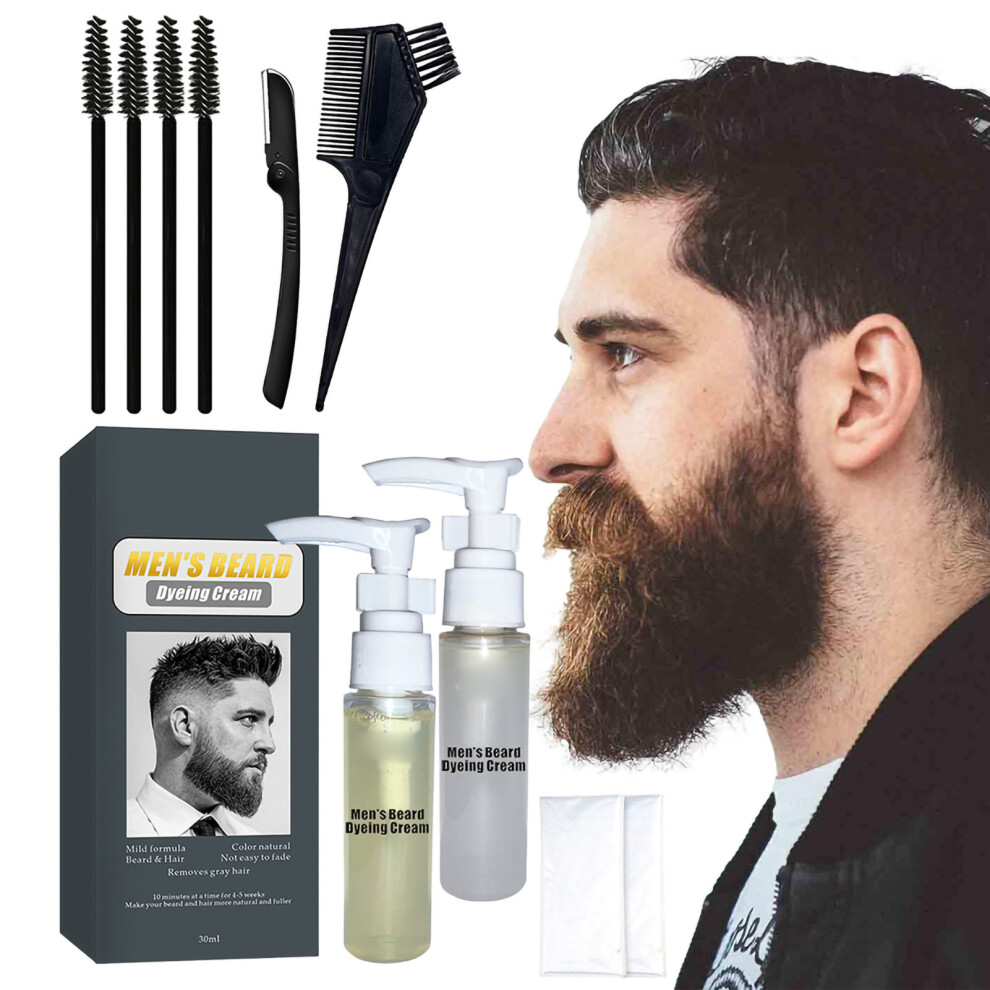 Men's Beard Dye, Gray Coverage, Healthy Facial Hair, Natural Look, Gentle Formula, Long Lasting, Water Resistant, Complete Kit, Versatile Color,