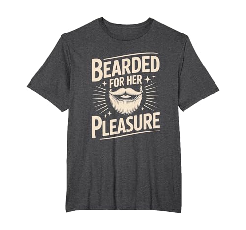 Bearded for Her Pleasure, Facial Hair Beard Lover Boyfriend T-Shirt, Men's Big and Tall, Dark Heather Grey, 5X Tall