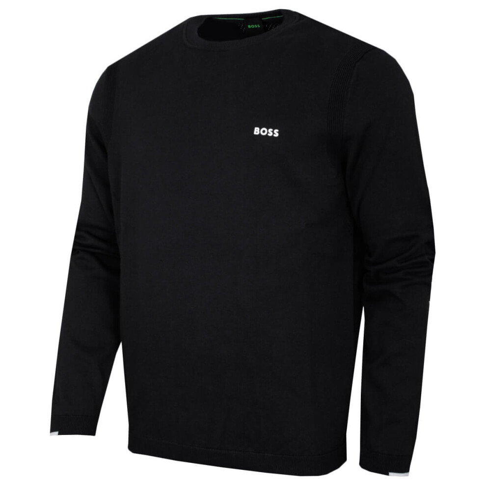 BOSS Mens K Ever-X CN Cotton Sweater with Contrast Details Black