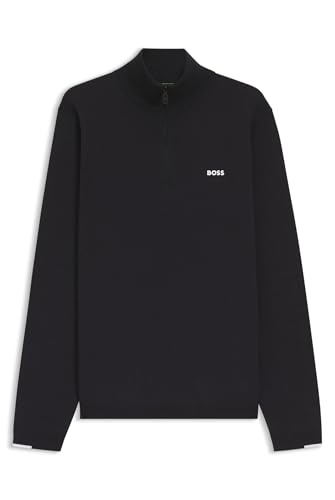 BOSS Mens K Ever-X QZ Zip-Neck Cotton Sweater with Logo Print