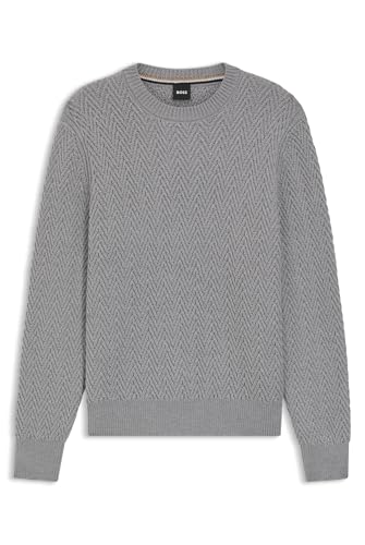 BOSS Mens H-Hitalo Virgin-Wool Sweater with Herringbone Structure